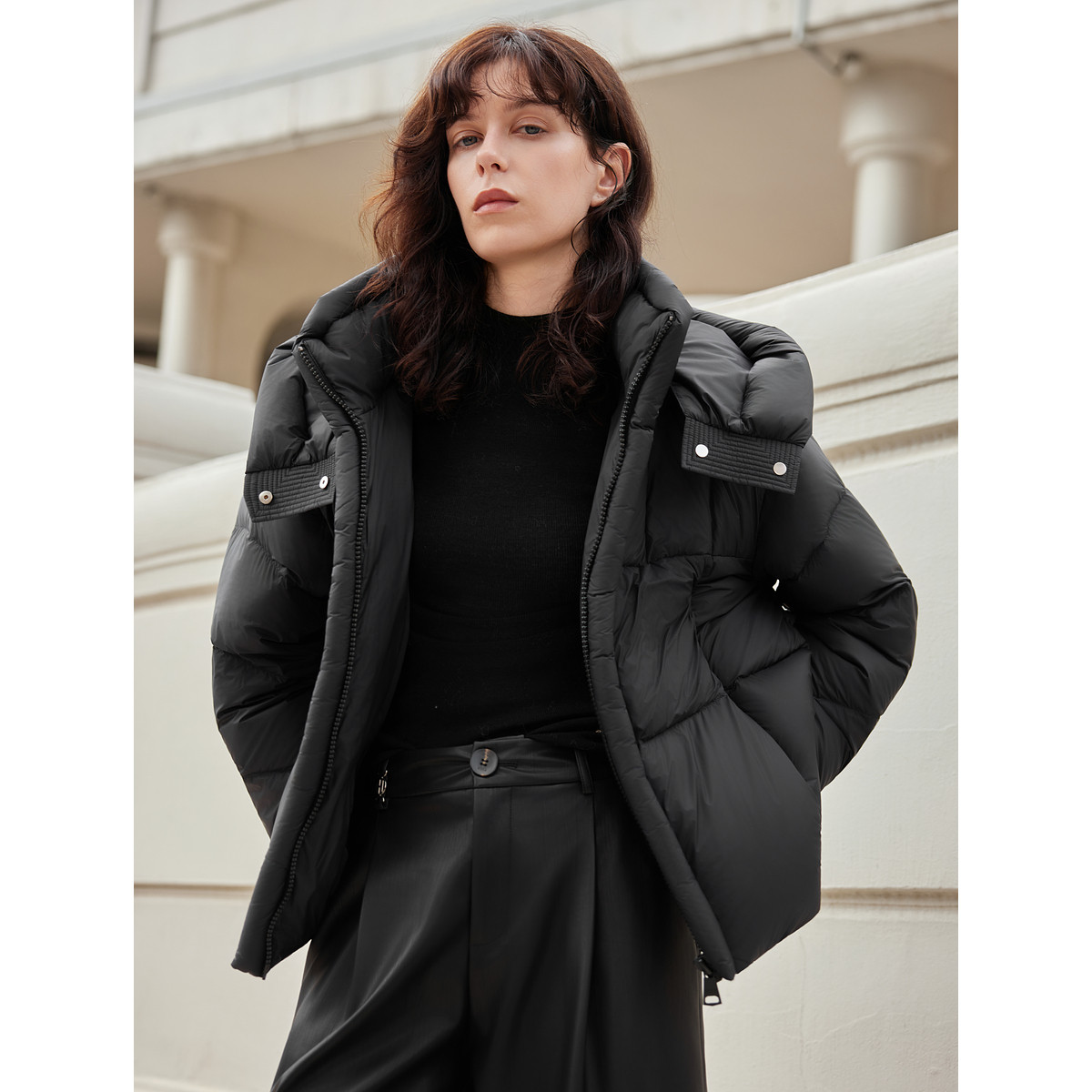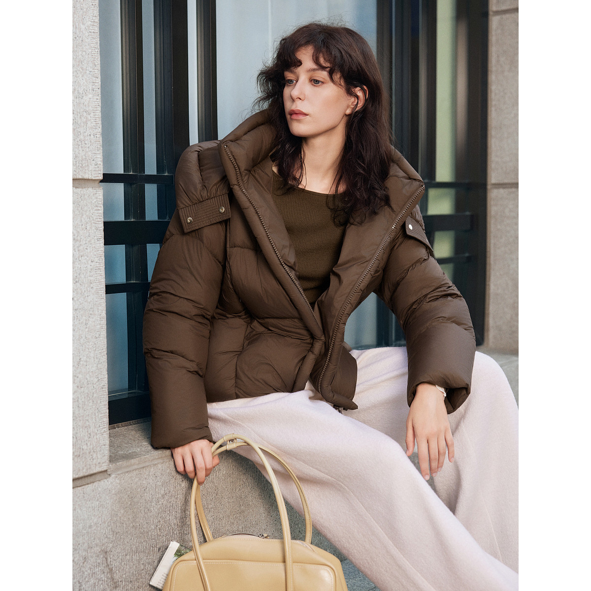 📚 【自营】【鹅绒】ELLE90连帽加厚短款羽绒服女2025冬新款保暖外套