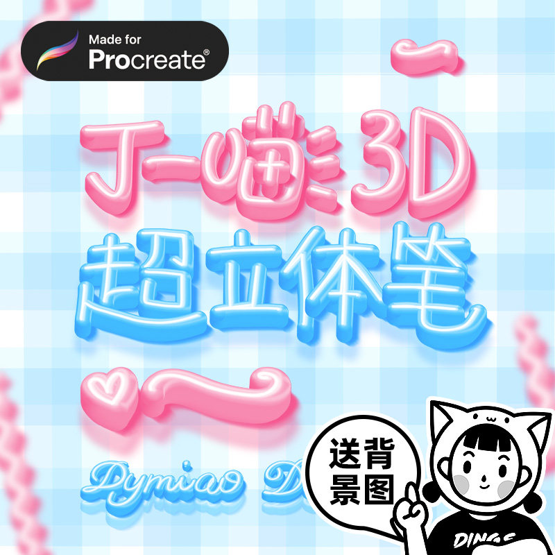 📚 Procreate笔刷 3D立体气球果冻奶油手写字体签名设计iPad 丁喵