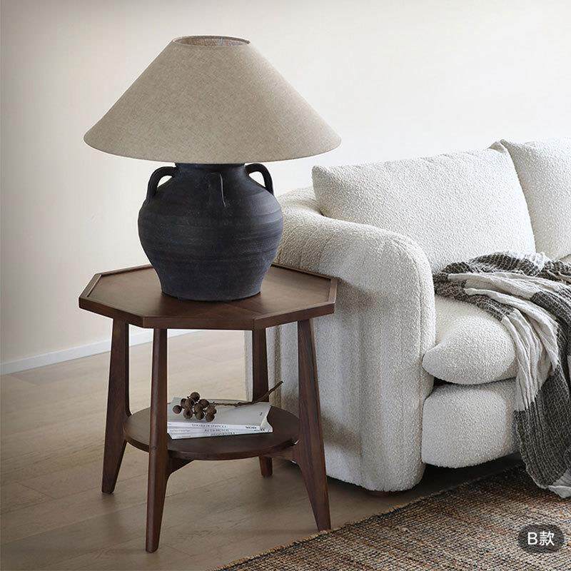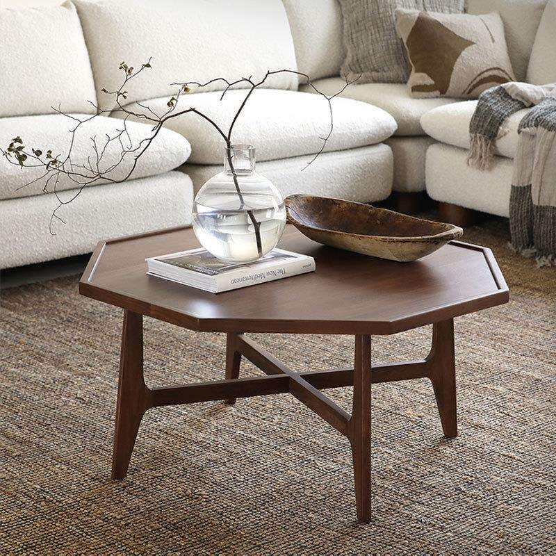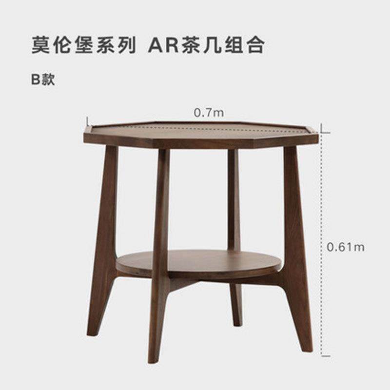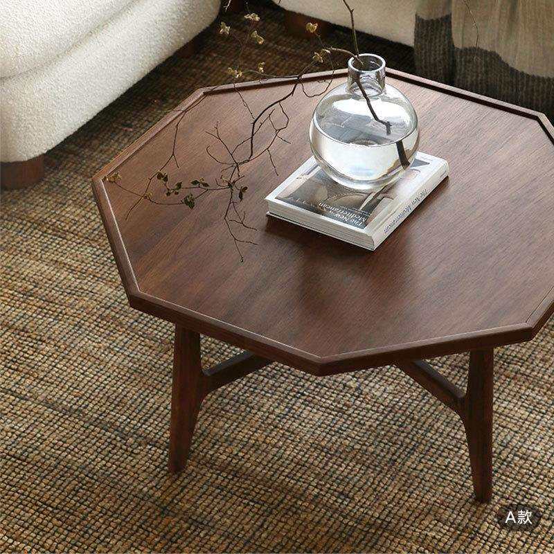 📚 北欧简约实木黑胡桃木八边形茶几小户型客厅樱桃木多功能沙发边几