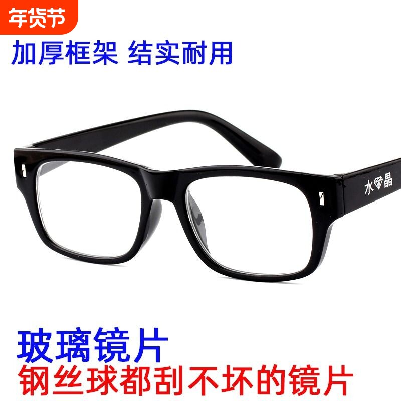 📚 水晶老花镜玻璃镜片高清男女光学老人钢丝球刮不坏100度视力真正