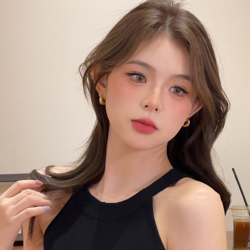 📚 金色牛角包圈圈耳环独特复古小众设计高级感气质轻奢时尚百搭耳饰