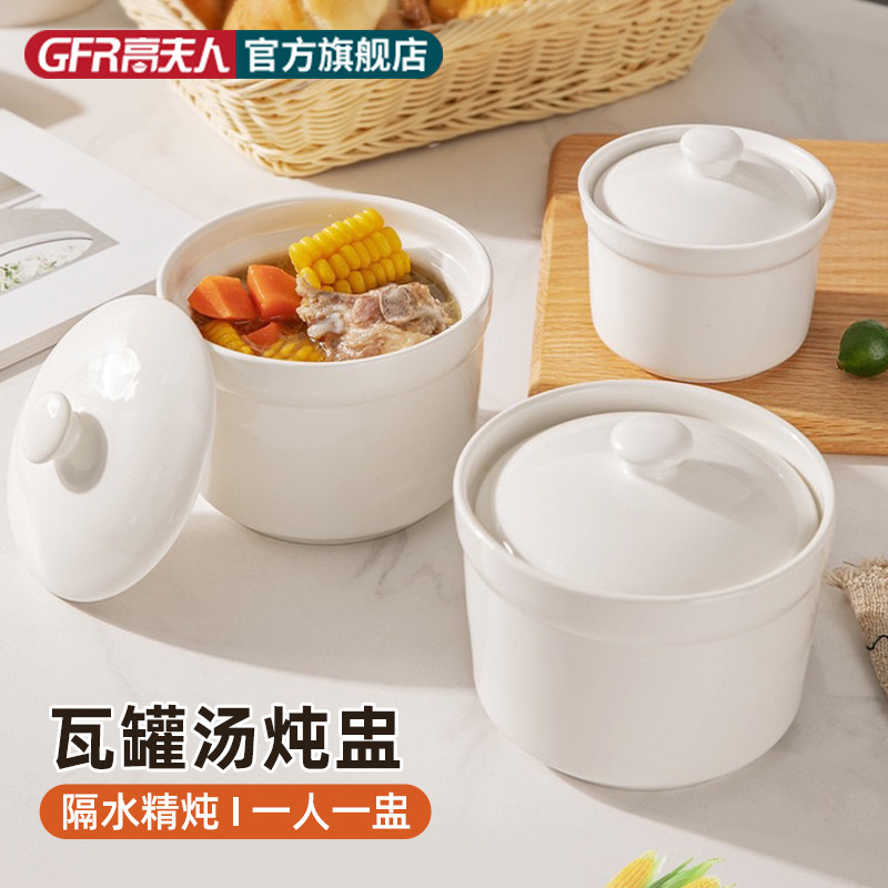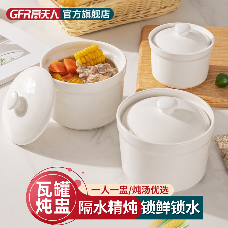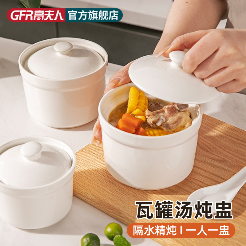 📚 高夫人陶瓷炖盅家用带盖鸡蛋羹汤炖盅隔水炖罐蒸蛋小瓦罐汤煲炖盅