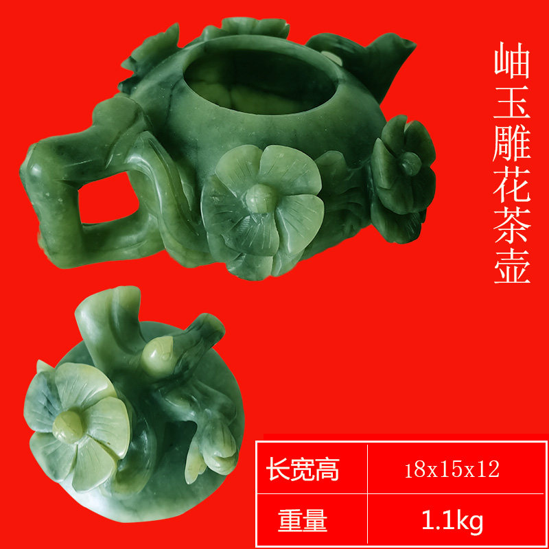 📚 岫玉石雕刻茶壶茶杯玉雕摆件功夫茶含丰富矿物质长期使用有益健康