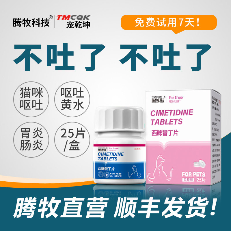 📚 西咪替丁片宠物西米替丁狗用猫用呕吐黄水吐白沫止吐药肠胃炎正品