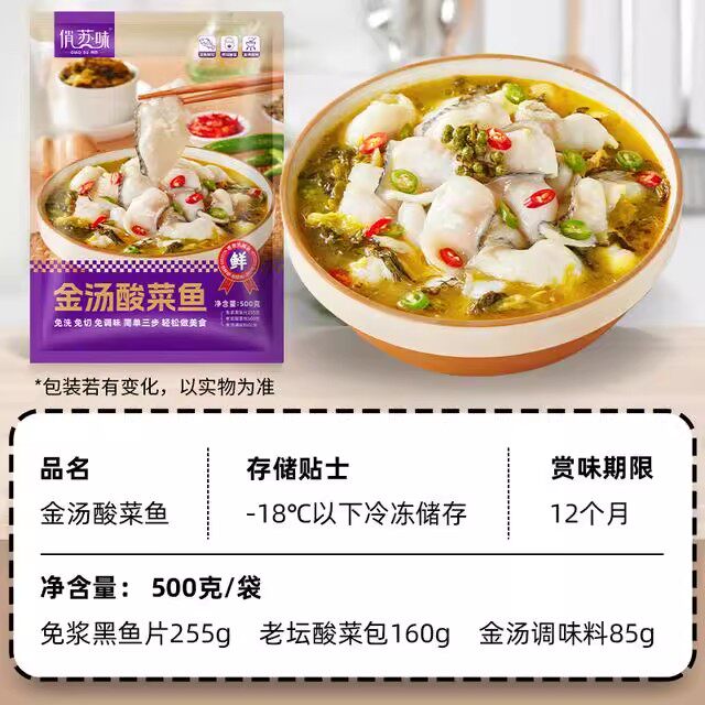 📚 俏苏味金汤酸菜鱼金汤黑鱼酸菜鱼500g*5袋俏苏味活黑鱼鲜切免洗