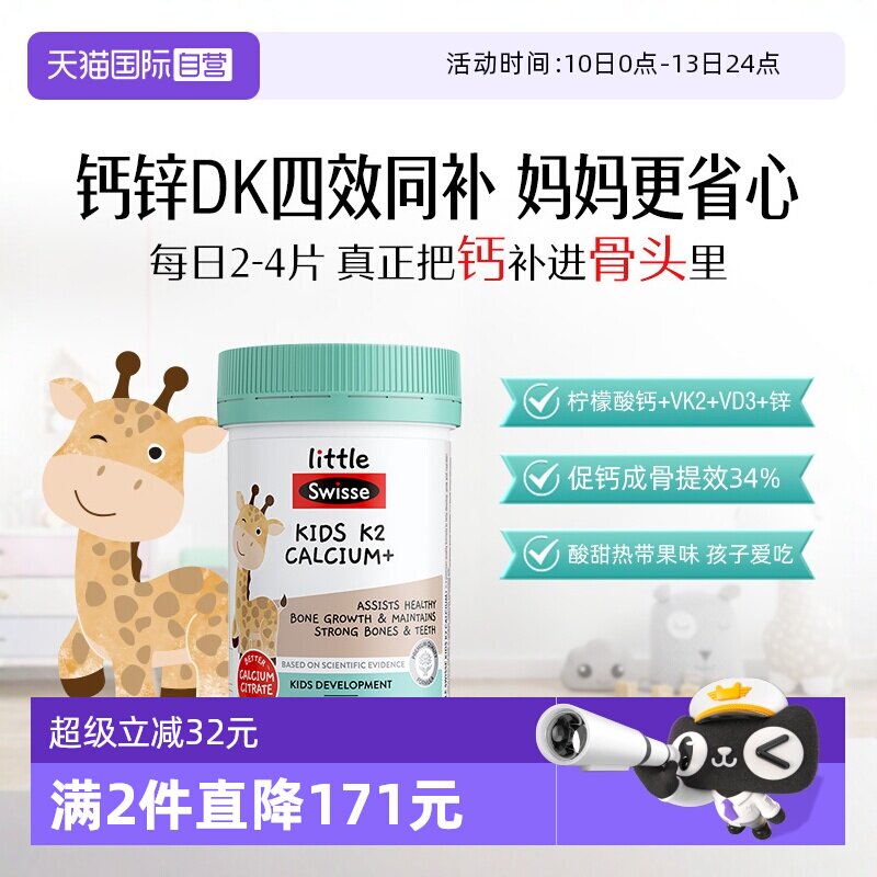 📚 【自营】Swisse斯维诗儿童K2柠檬酸钙片60粒青少年液体钙镁锌