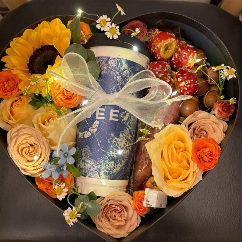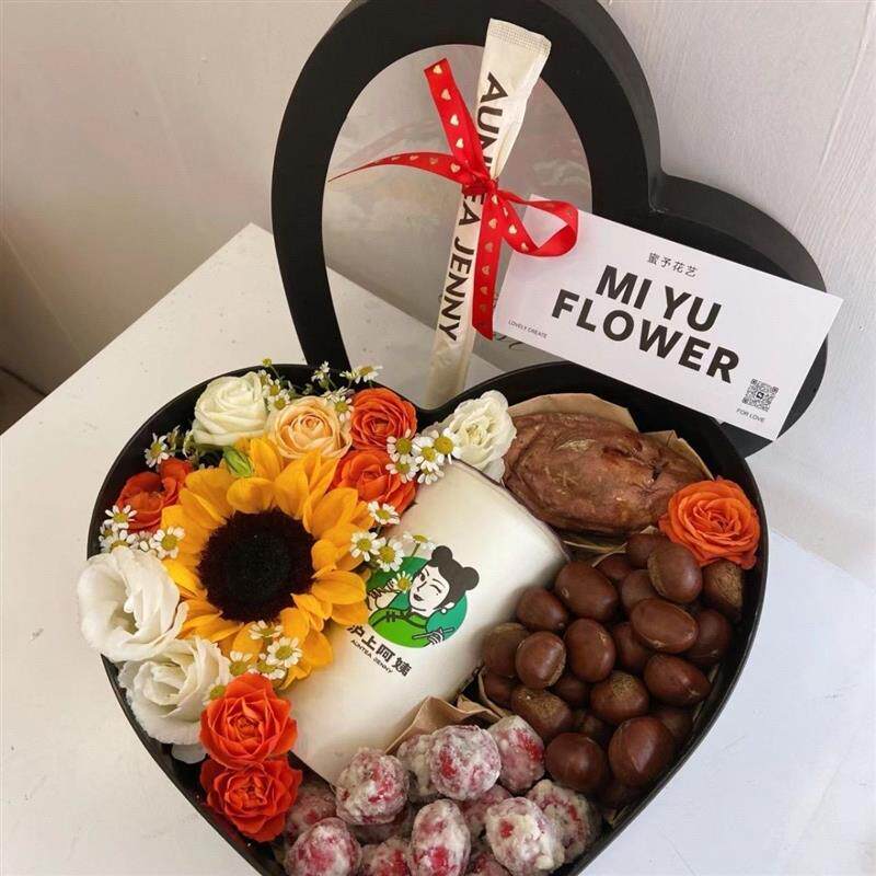 📚 烟香礼盒花束满天星大爱心礼盒花手工制作送男友父亲520七夕生日