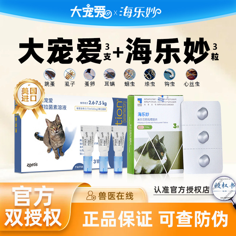 📚 大宠爱海乐妙成猫专用驱虫药体内体外猫咪打虫滴剂猫猫耳螨跳蚤药