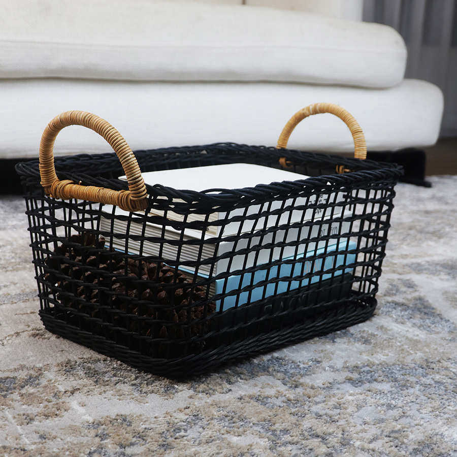 📚 天然藤编收纳篮印尼白藤编织镂空提手篮子水果面包收纳置物篮