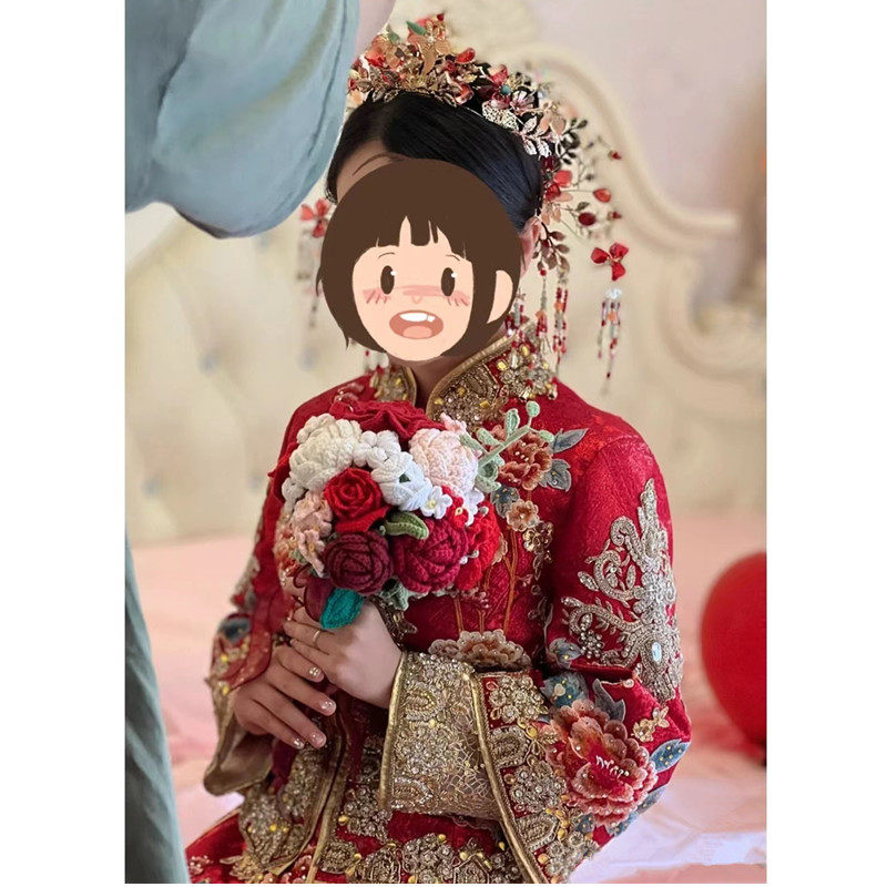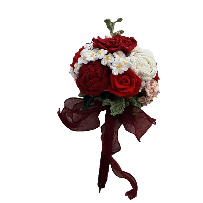 📚 新娘手捧花手工编织diy材料包自制玫瑰混搭花束钩织成品送闺蜜