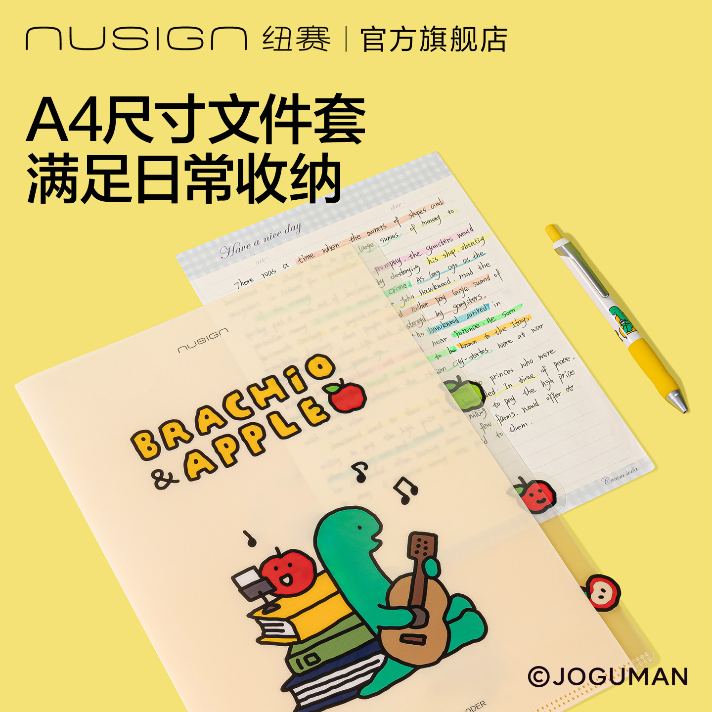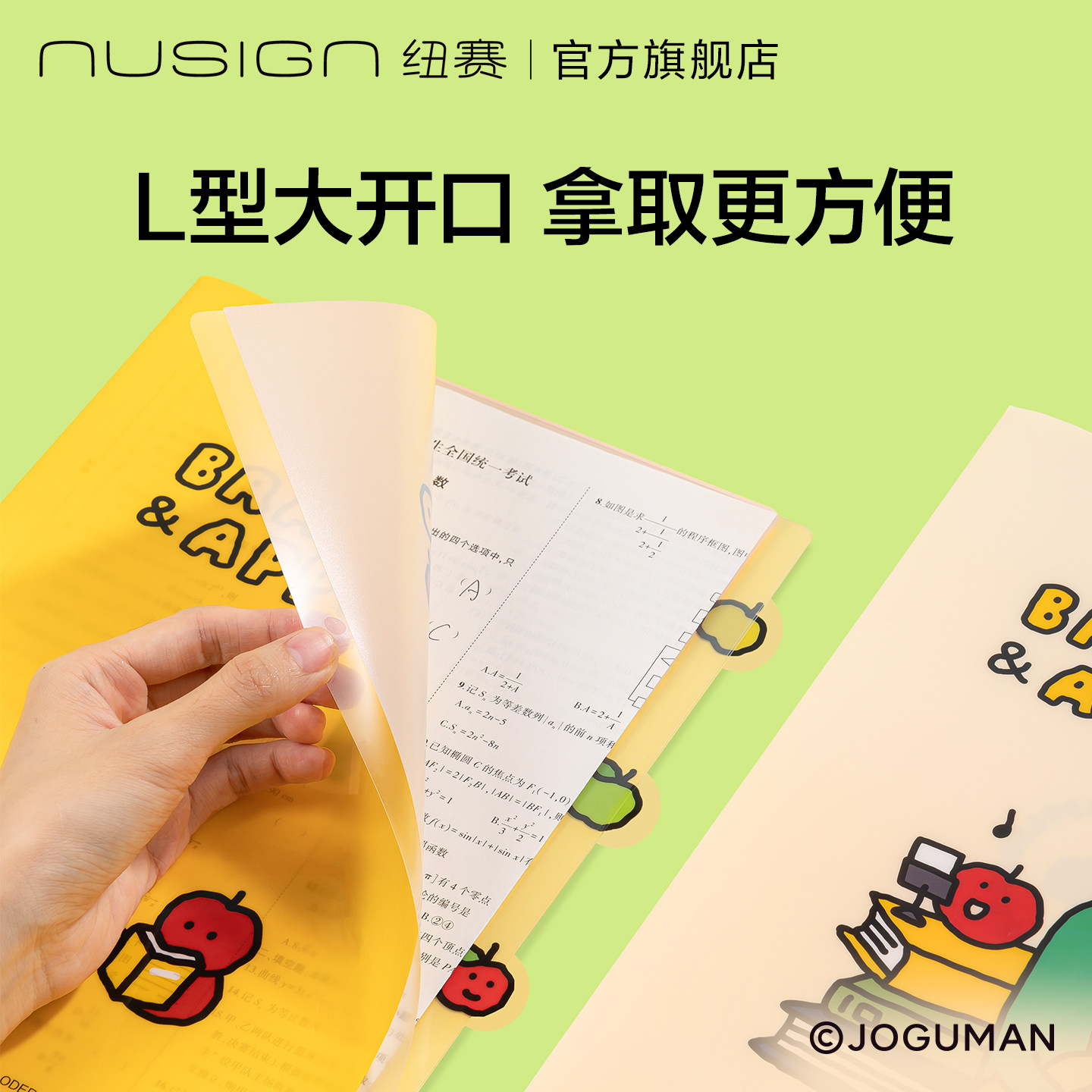📚 Nusign纽赛乔古漫联名L型四入文件套A4单页收纳试卷小学生初中生专用joguman小恐龙卡通图案高颜值多巴胺