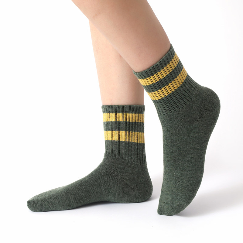 📚 条纹袜子女男秋冬羊绒中筒加厚保暖堆堆袜长筒针织羊毛袜黑色长袜