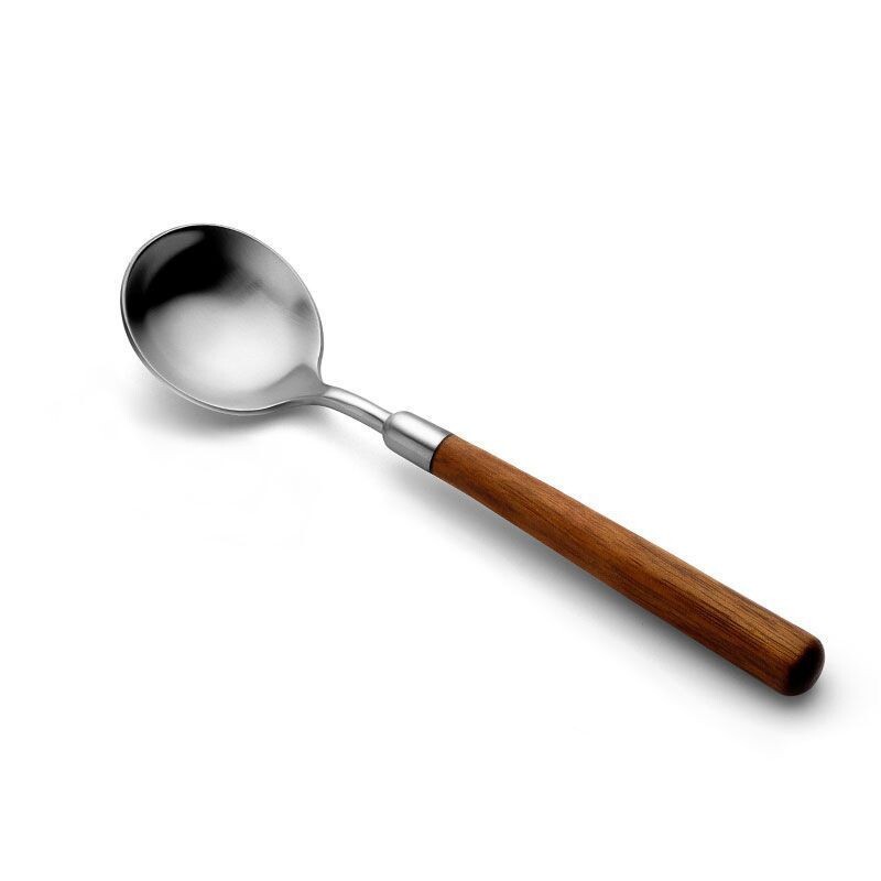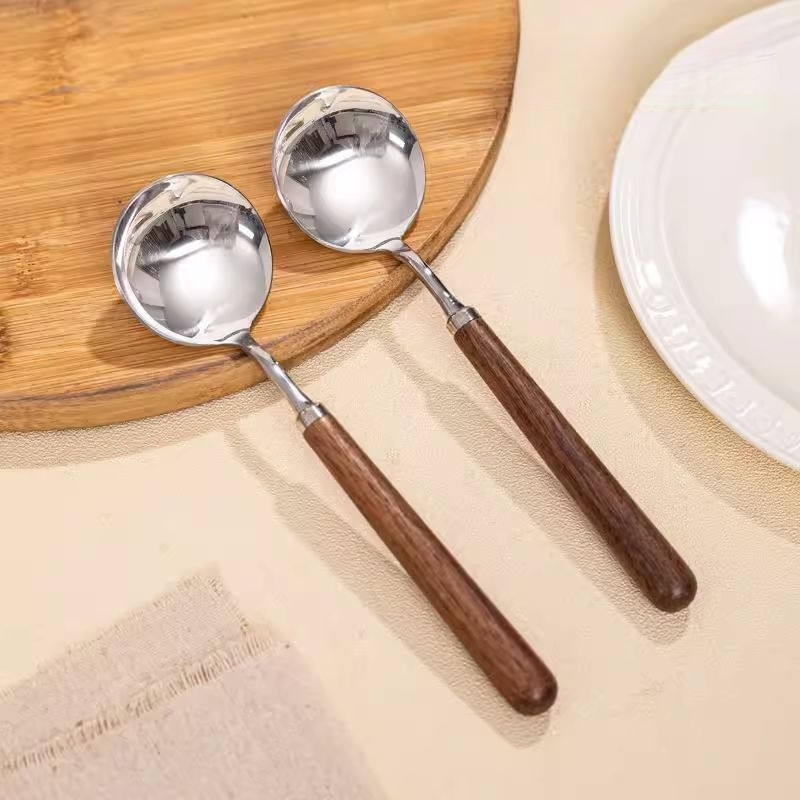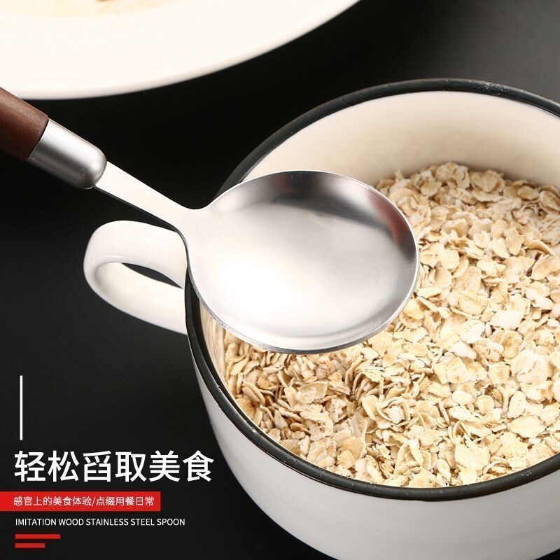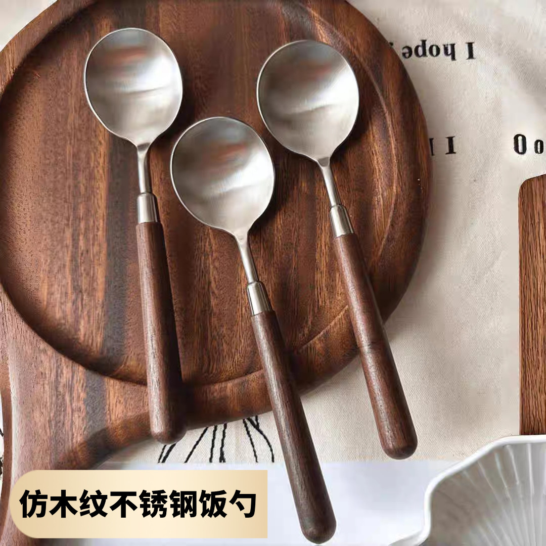📚 仿木纹胡桃色餐具不锈钢汤勺火锅勺子汤勺汤分餐勺复古家用吃饭勺