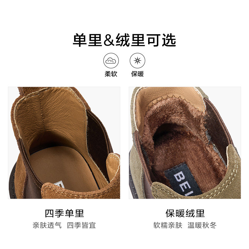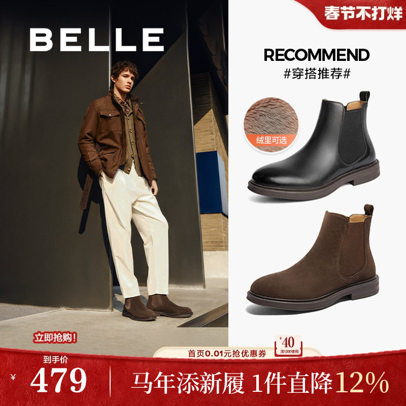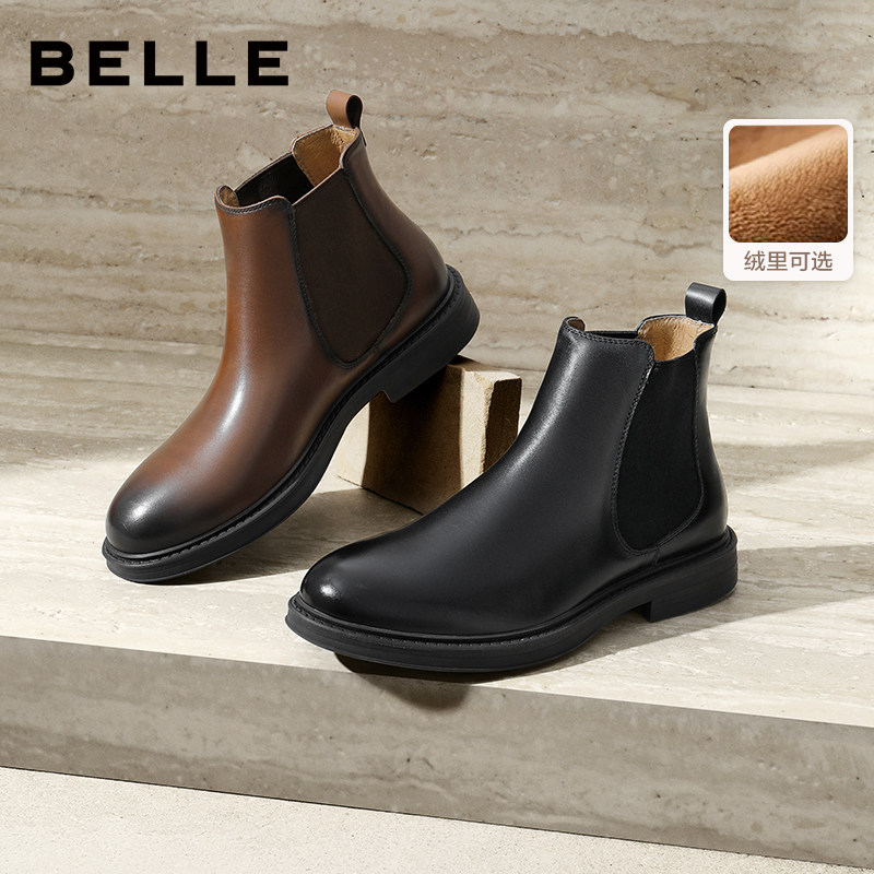 📚 百丽男鞋黑伯爵加绒保暖马丁切尔西靴棉鞋厚底增高短靴A1690DD4