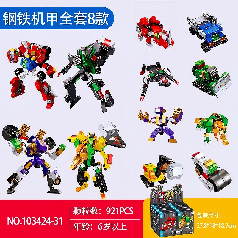 📚 森宝积木钢铁机甲系列变形金刚合体灵犀狂鲨飞鹰战狼益智拼装玩具