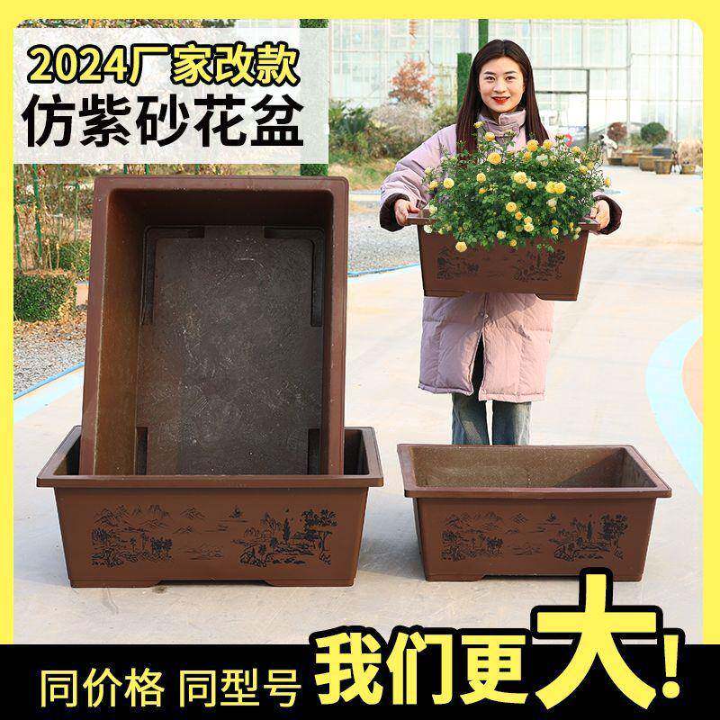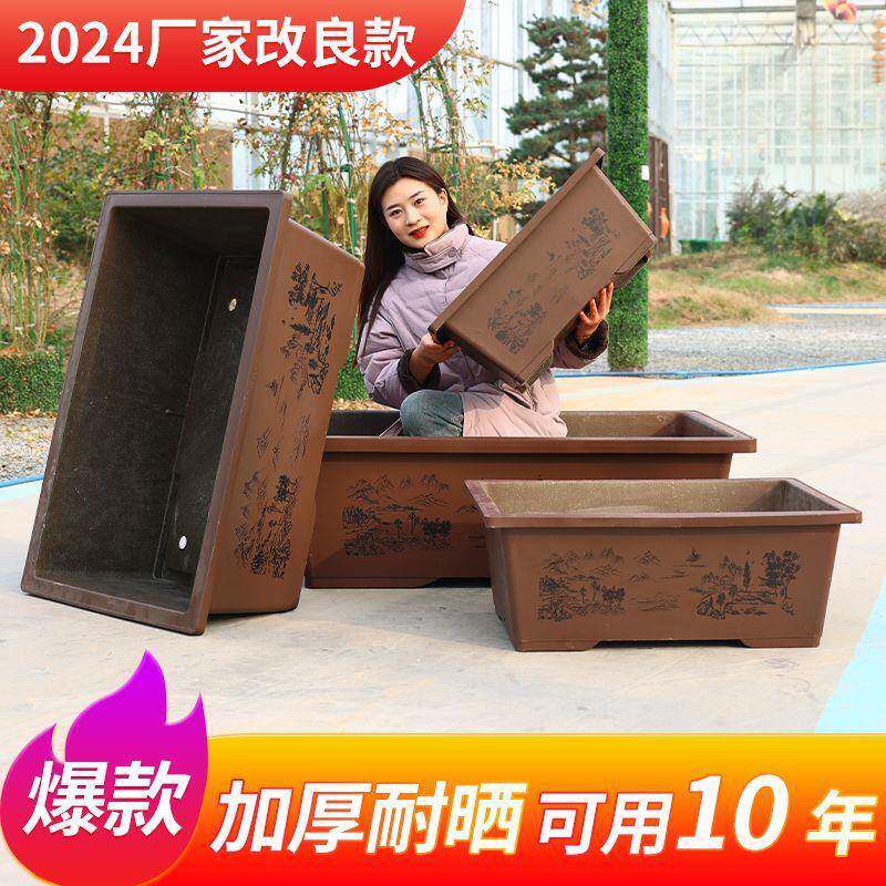 📚 无孔荷花盆缸特大号长形口马槽盆景花4方0cm径罗汉10057809松仿紫