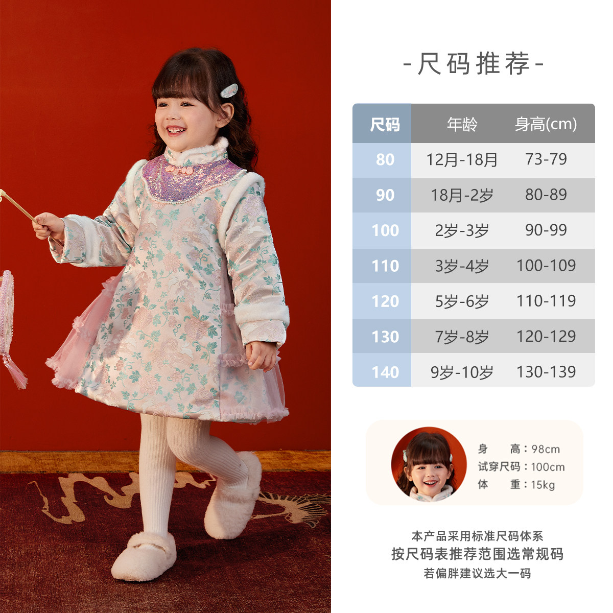 📚 汉服女童冬新年唐装宝宝中国风裙子冬装小童连衣裙儿童衣服女冬季