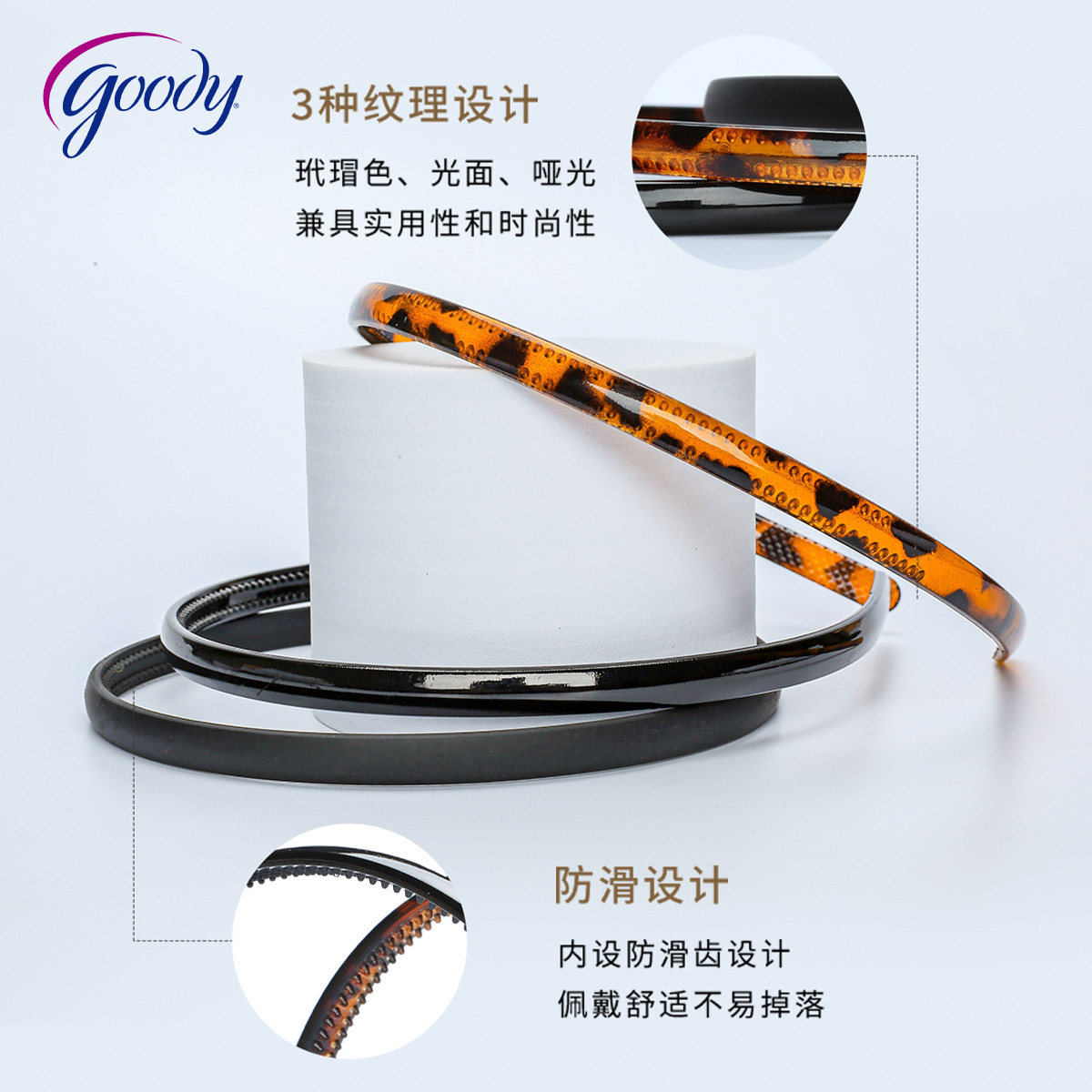 📚 Goody歌妮发箍女碎发整理神器细款头箍带齿防滑刘海发卡头饰3个装