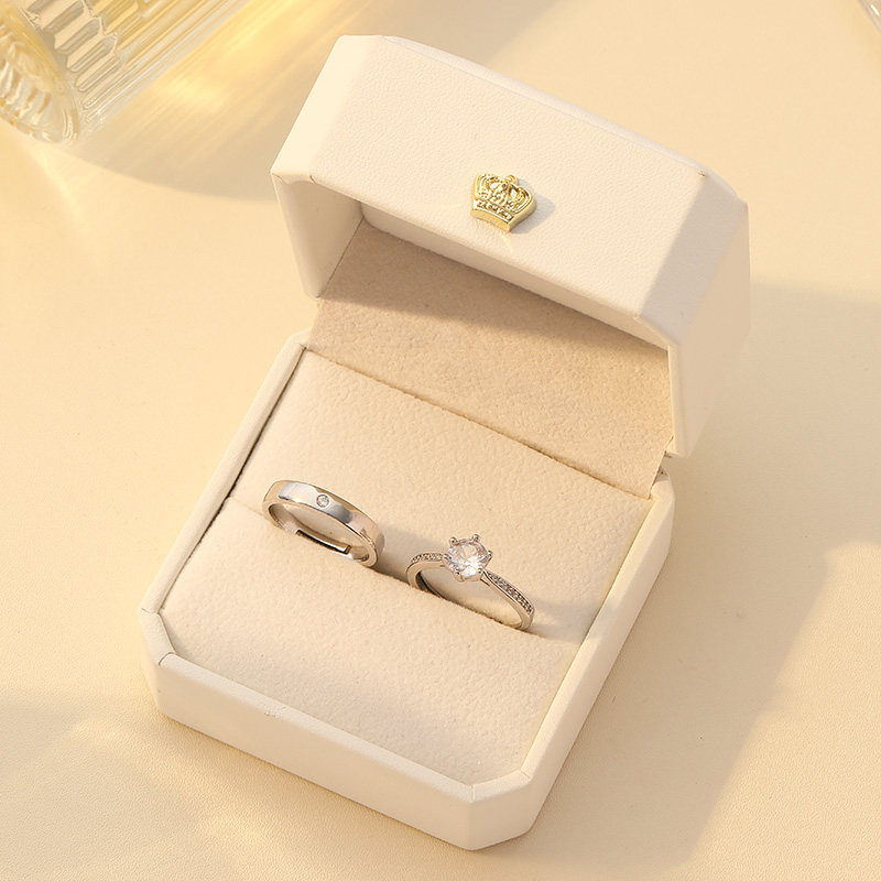 📚 仿真钻戒结婚对戒情侣婚戒一对假钻石戒指求婚婚礼活口可调节道具