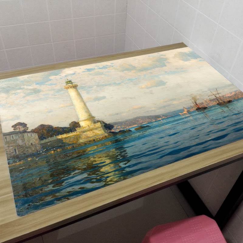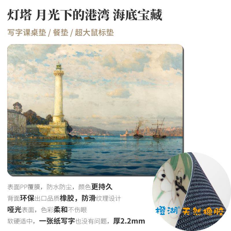 📚 海底的宝藏灯塔月光下的港湾环保桌垫台垫写字餐垫定制超大鼠标垫