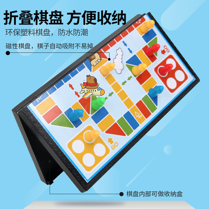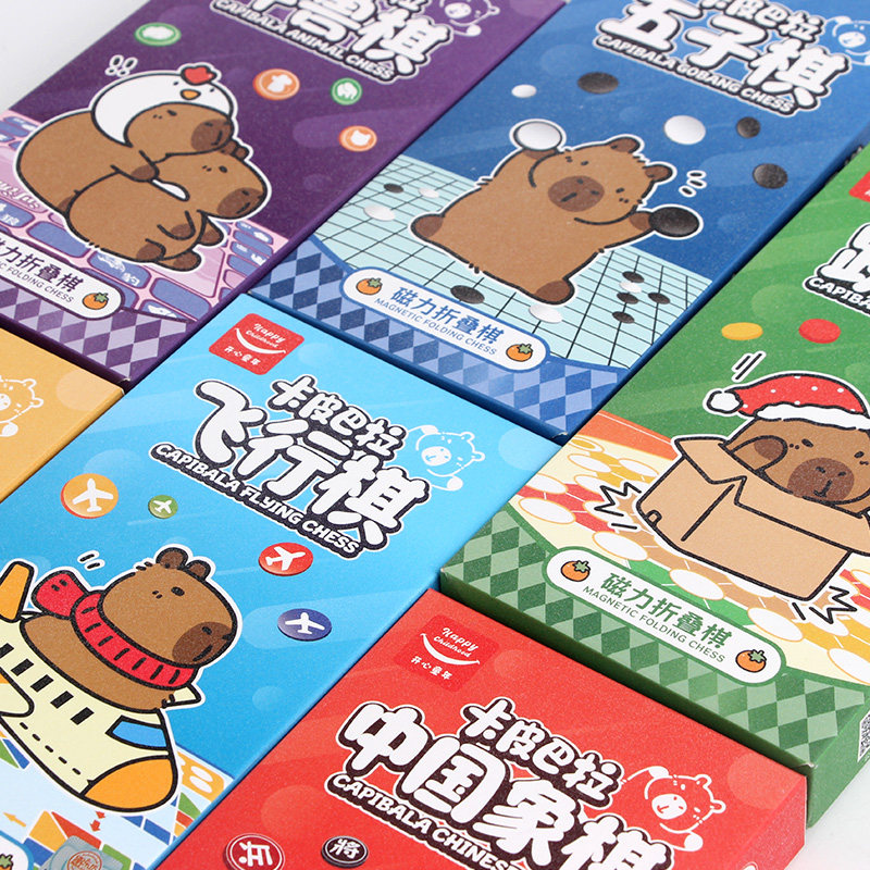 📚 愚乐坊卡皮巴拉磁性折叠棋便携版飞行棋五子象棋跳棋斗兽棋礼盒装