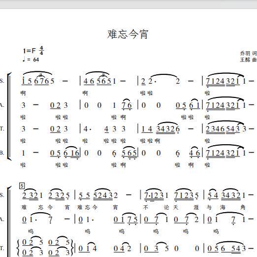 📚 难忘今宵 彩虹室内合唱团 另售四声部合唱简谱钢琴伴奏谱