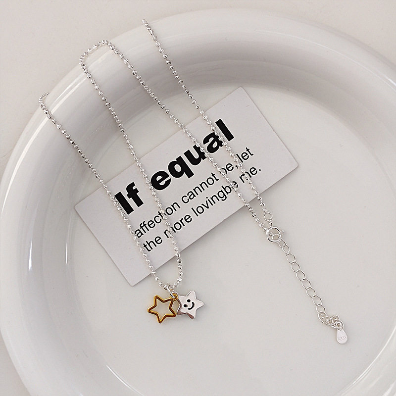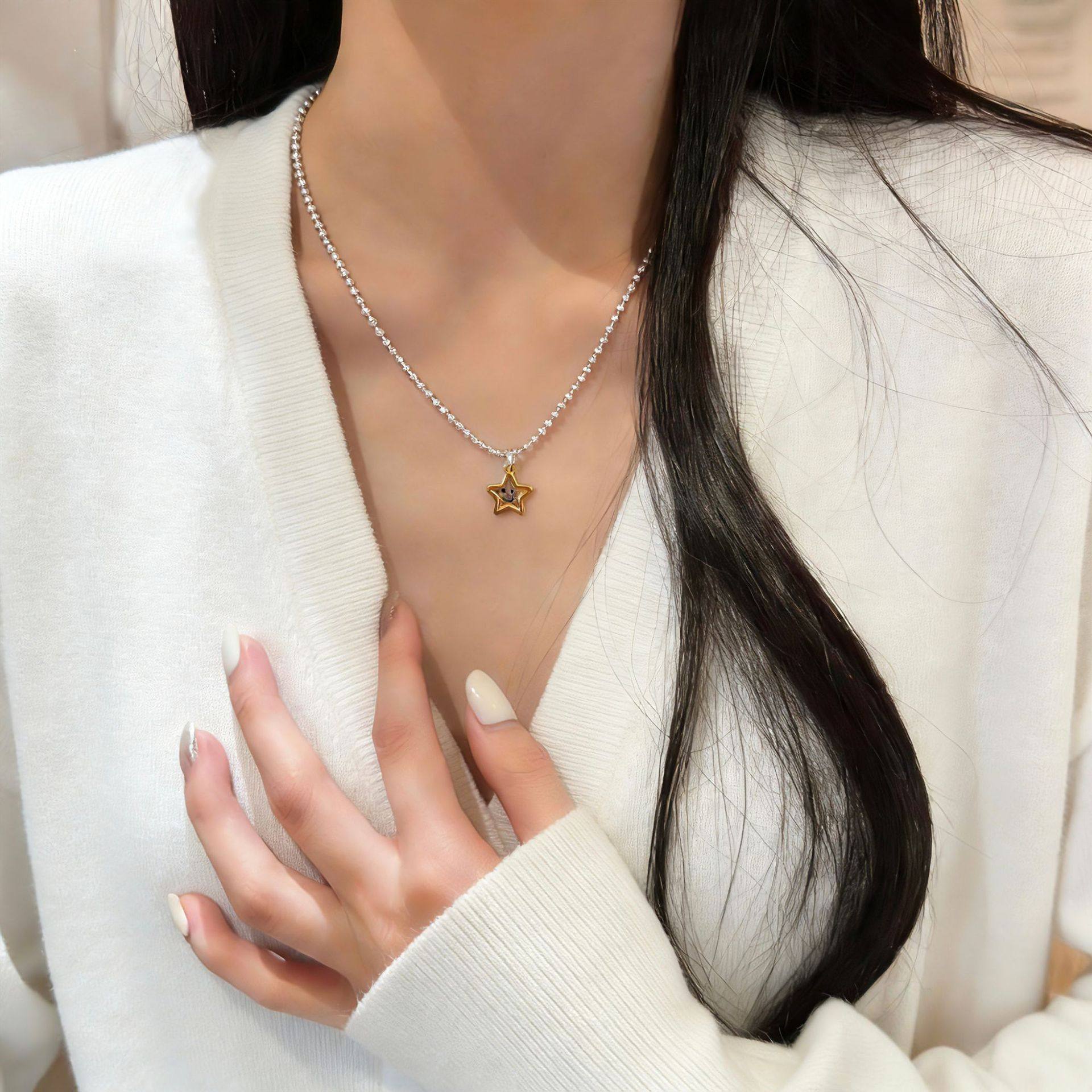 📚 高级感星星吊坠纯银项链微笑设计师款五角星S925银圆珠链女毛衣链