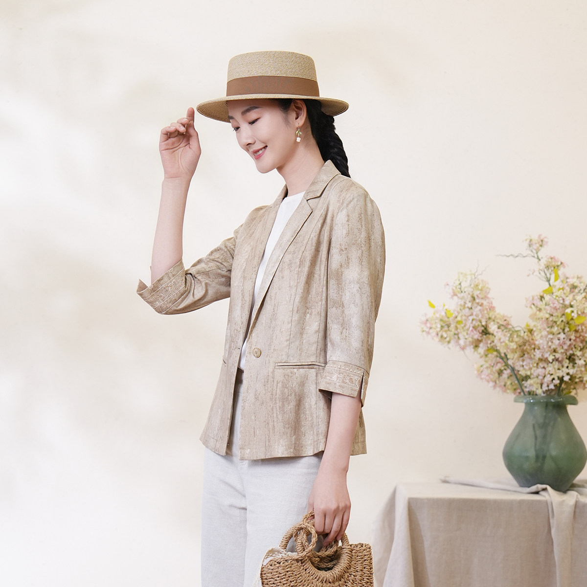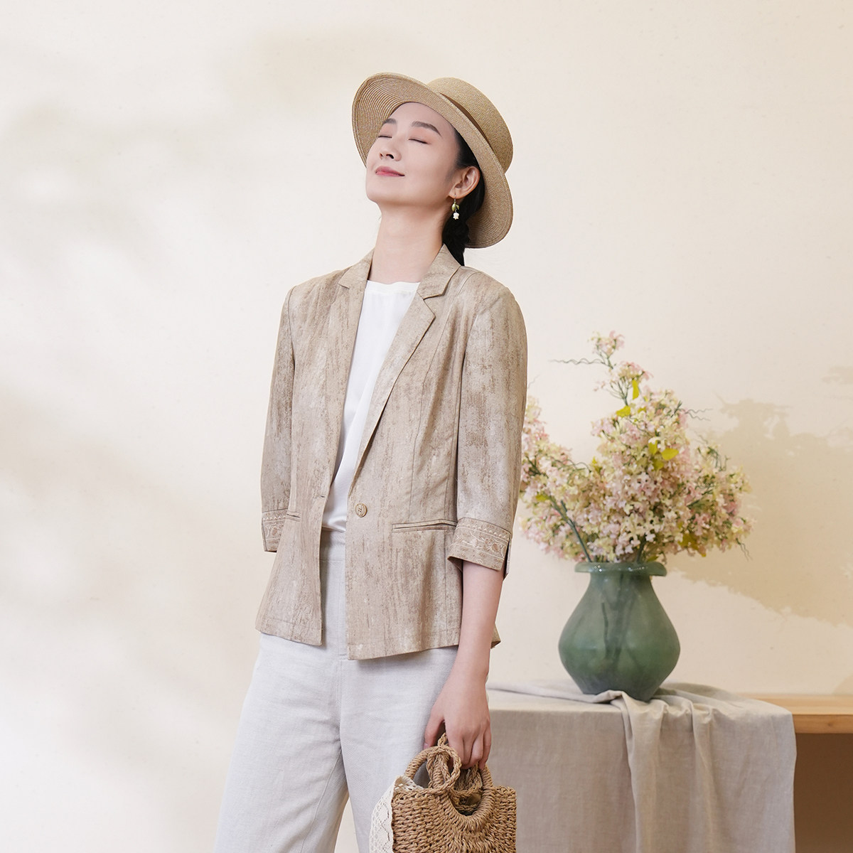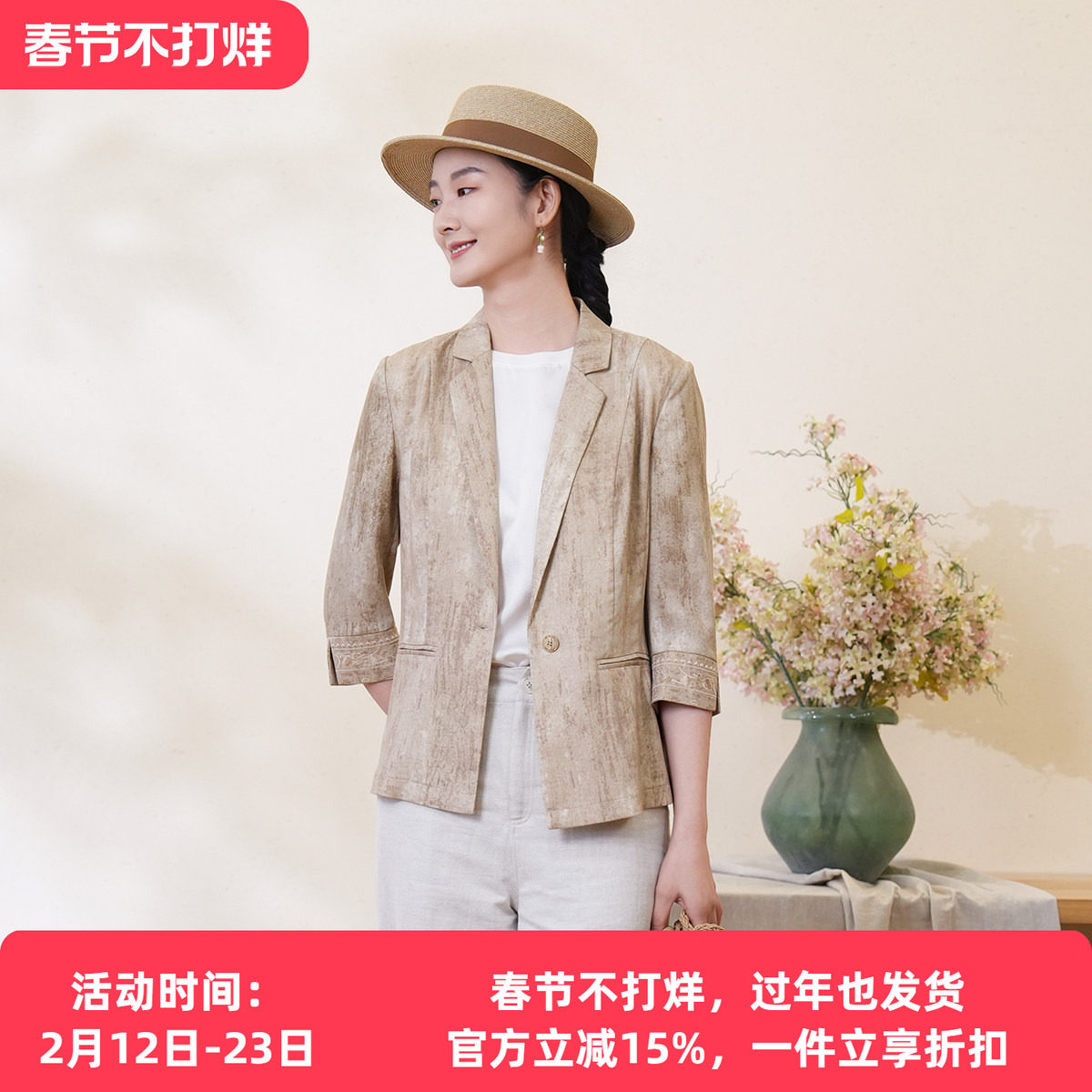 📚 布符2025春平驳领刺绣炒色西服女复古斑驳肌理百搭商务通勤外套