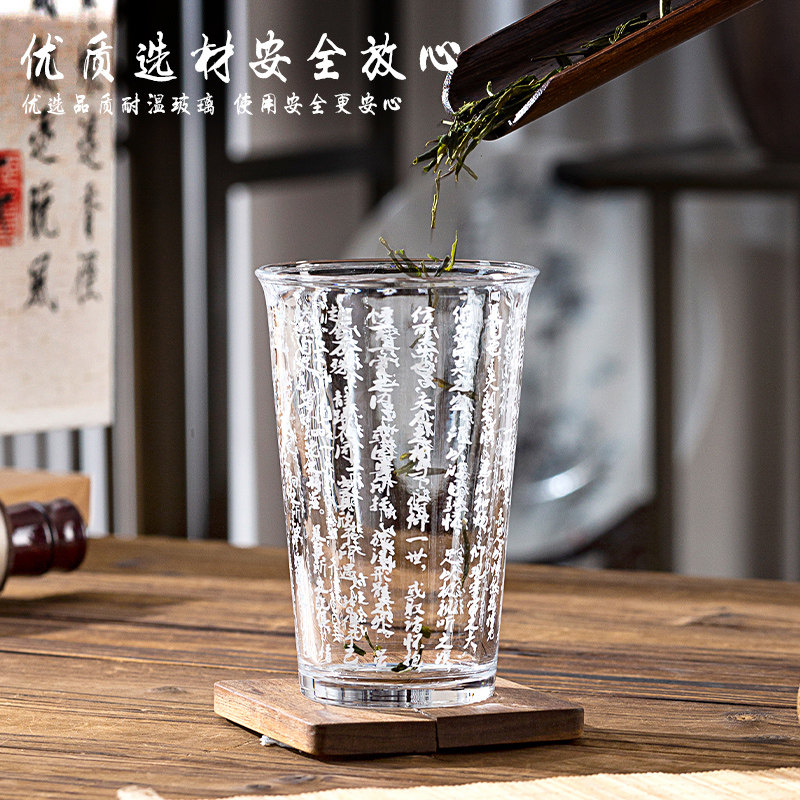 📚 包邮新中式国潮风兰亭序书法字玻璃杯家用喝水杯泡茶杯牛奶咖啡杯