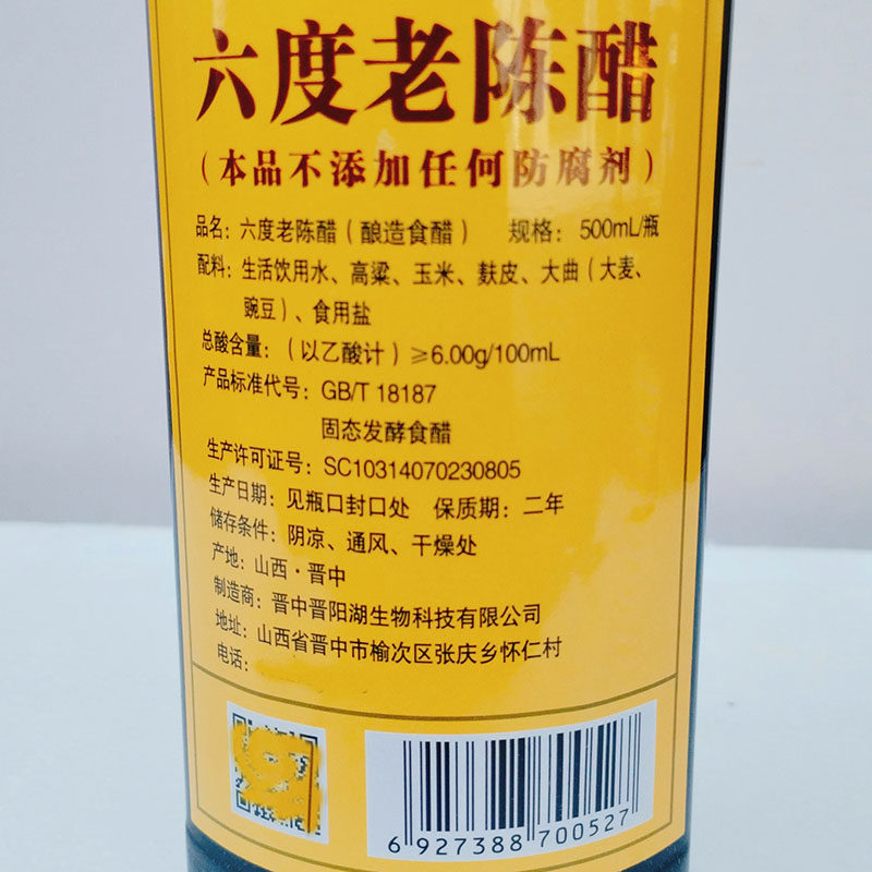 📚 晋阳湖六度老陈醋500ml山西特产五年陈6度粮食酿造食醋凉拌调味料