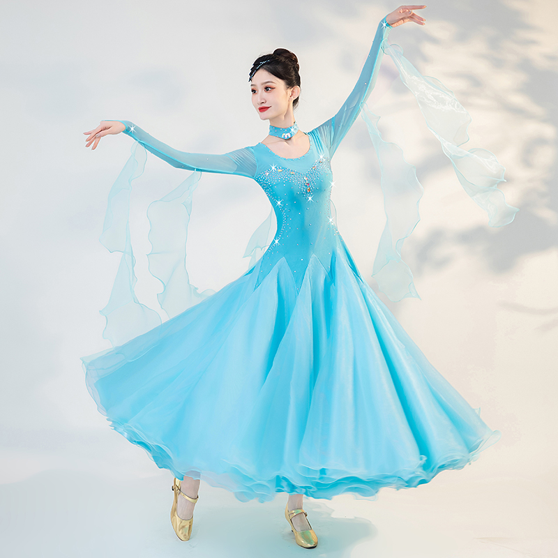 📚 高端摩登舞裙2023新款国标华尔兹交谊舞大摆连衣裙演出服比赛表演