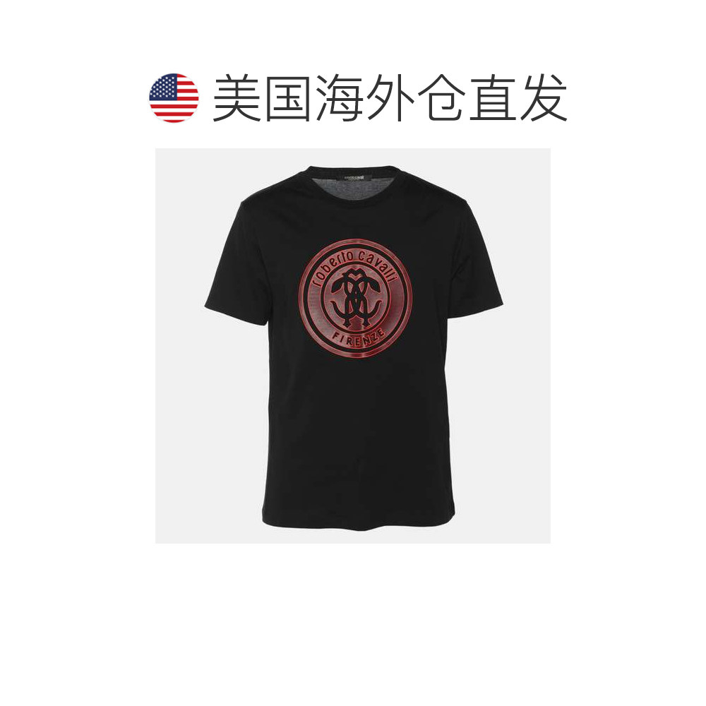 📚 自营roberto cavalliRobert Cavalli Black Jersey Logo Print T-