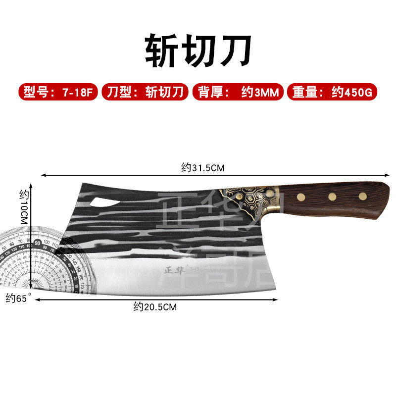 📚 正华菜刀锻打斩切刀两用菜刀锤纹家用切肉砍N骨切厨房手工锋利切