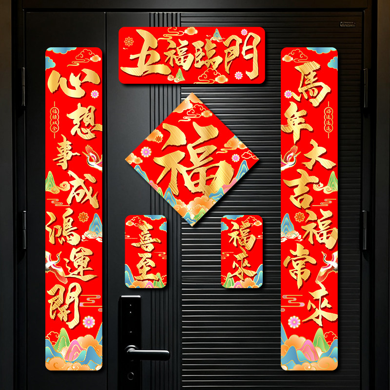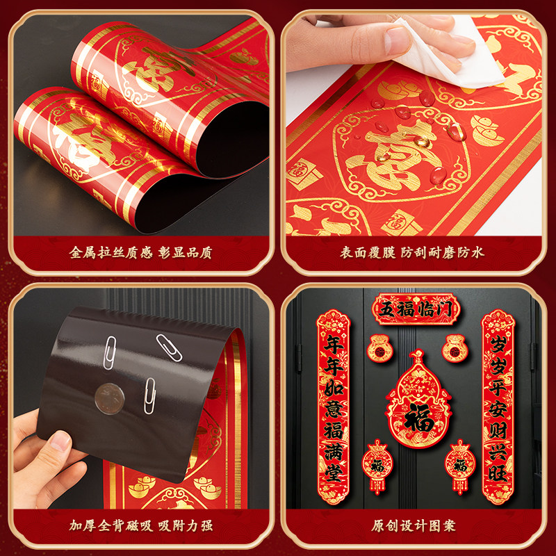 📚 2026传统马年彩色拉丝对联家用磁吸门联新年春节过年福字门贴春联