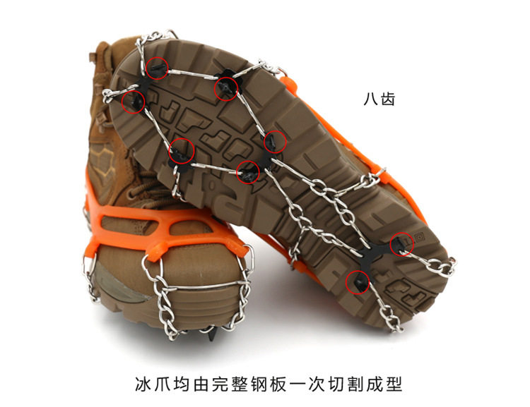 📚 冰爪防滑鞋套8齿锰钢攀冰雪地雨雪天防滑鞋套雪爪冰抓户外简易冰