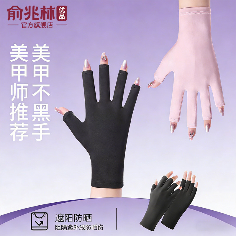 📚 俞兆林美甲手套防紫外线黑防辐射烤黑手套防护露指照灯做指甲专用