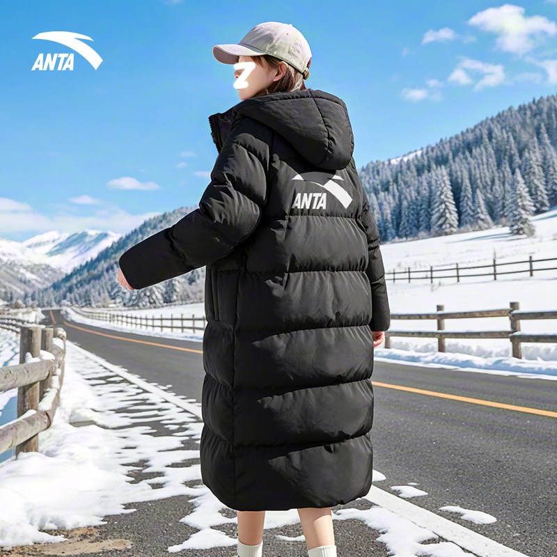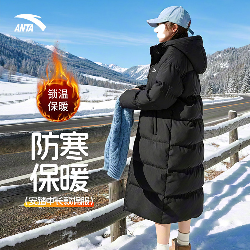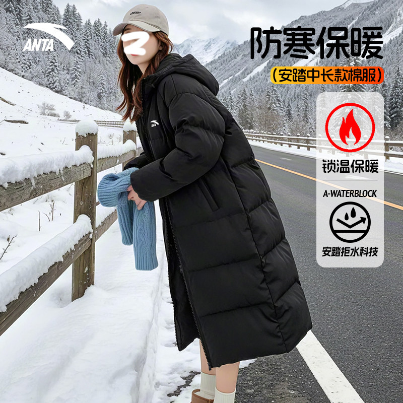 📚 安踏长款棉服女2025冬季新款中戏连帽加厚保暖防风棉衣宽松面包服