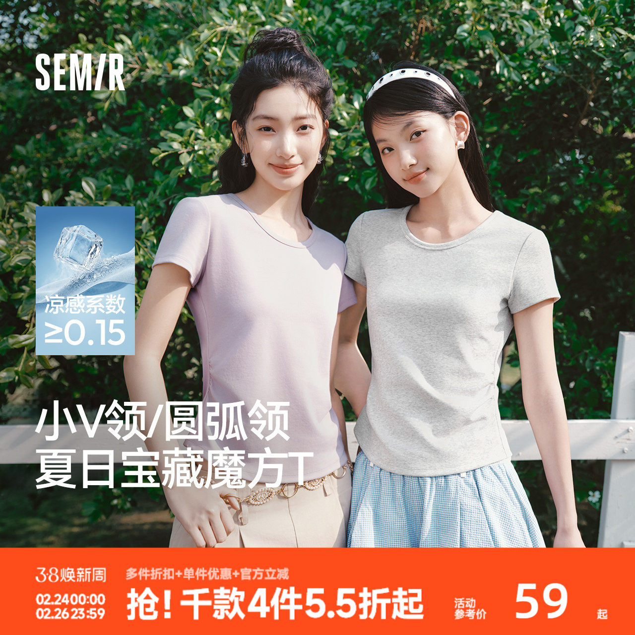 📚 凉感T|森马短袖T恤女夏季短款U领正肩褶皱修身刺绣2026新款针织衫