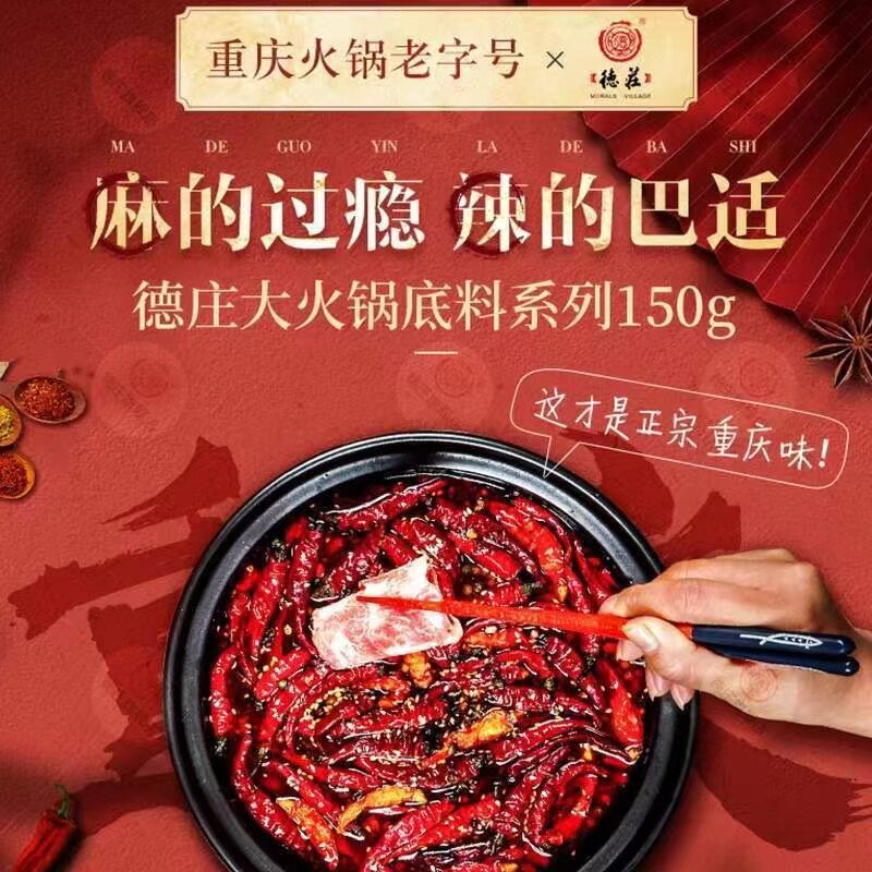📚 正宗德庄火锅底料中辣牛油麻辣家用炒菜调料味极鲜45度火锅重庆