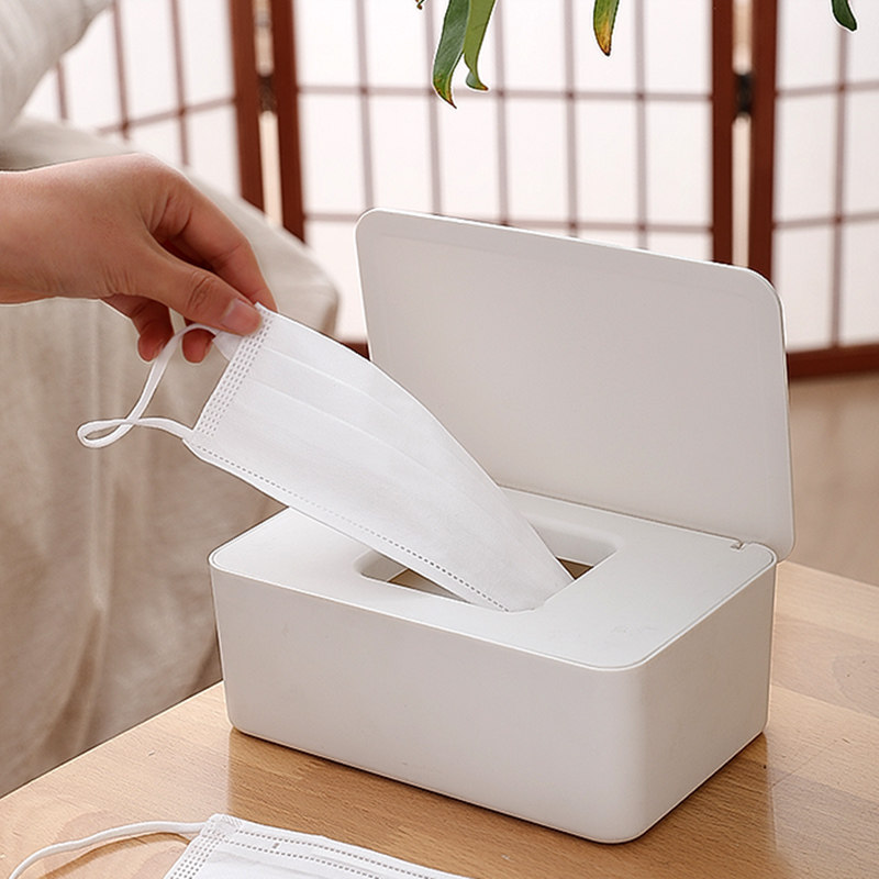 📚 日本湿巾盒密封抽取式纸巾盒带盖防尘口罩收纳盒卫生纸收纳盒桌面