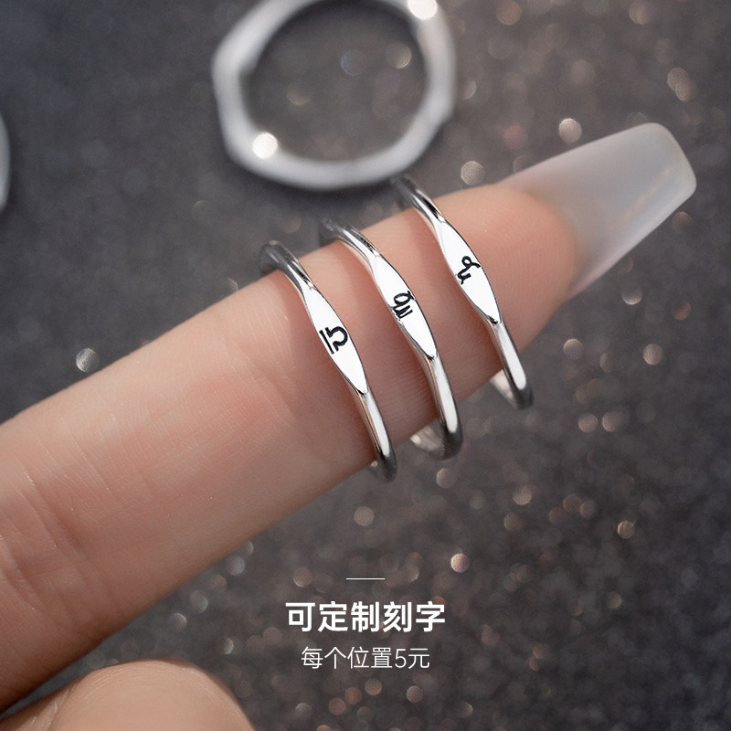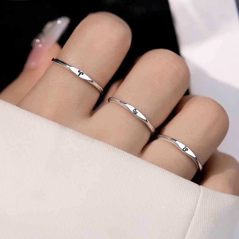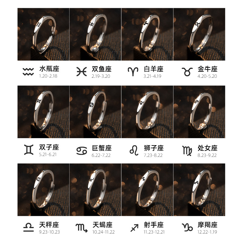 📚 十二星座纯银戒指女男士单身高级感食指银饰素圈指环2026新款爆款