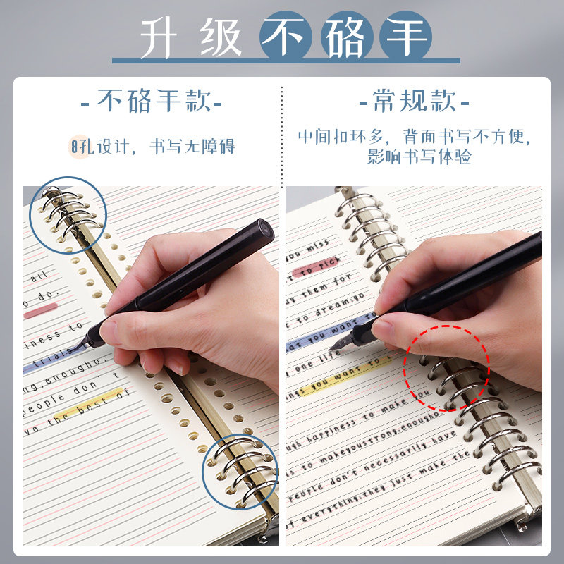 📚 英语本活页笔记本子可拆卸加厚B5四线三格英文本初高中生单词本大学生考研错题整理16开活页纸替芯作业练习本