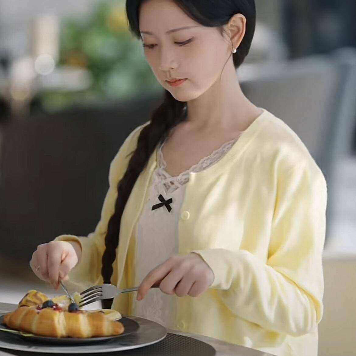 📚 原版短剧婚夜燃尽林秋奈孟瑜同款毛衣女衣服圆领黄色针织衫上衣潮