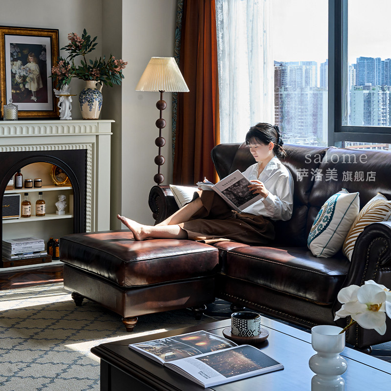 📚 美式复古真皮沙发客厅2026新款单人双人直排新中式小户型实木沙发