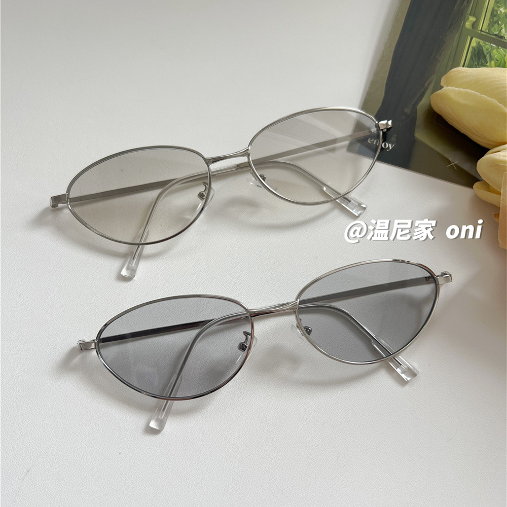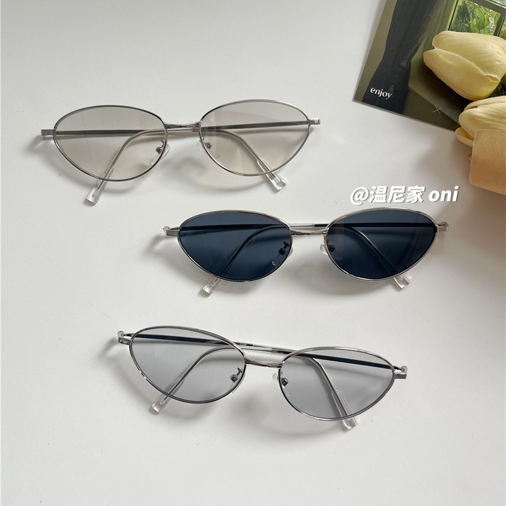 📚 韩系街拍~复古金属银猫眼墨镜新款个性修饰脸型防紫外线太阳眼镜