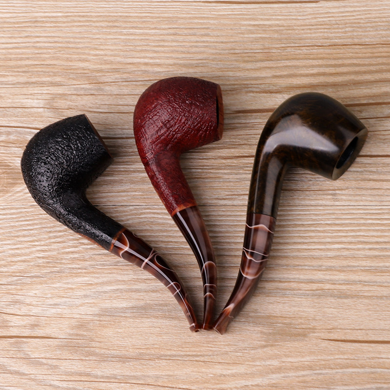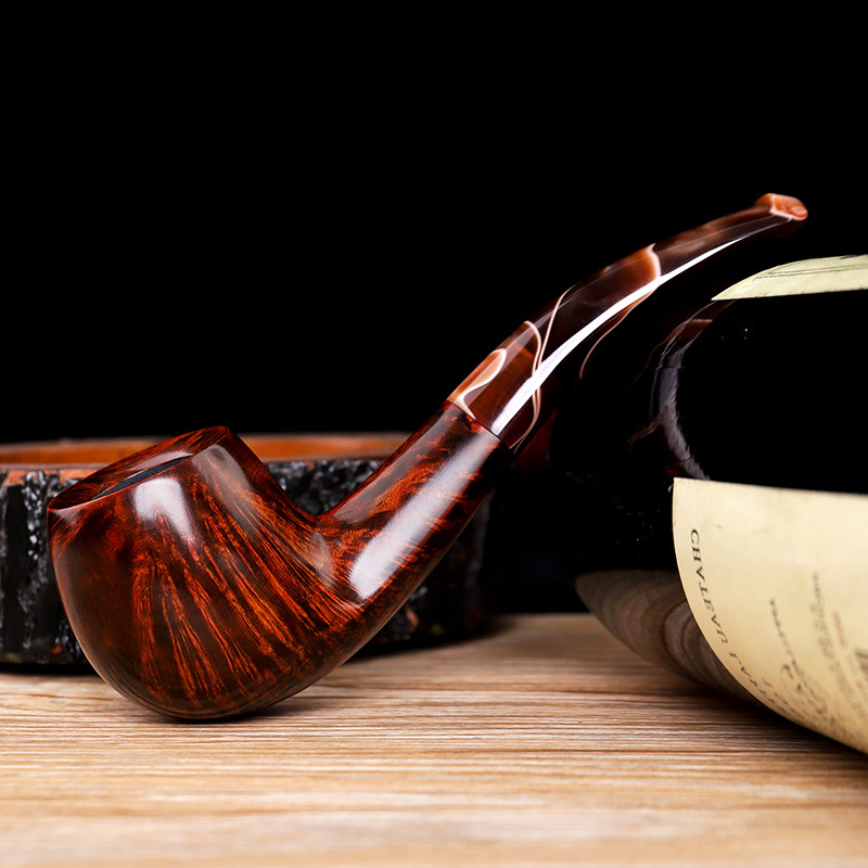 📚 石楠木烟斗男士手工实木弯柄撞球烟斗老式传统过滤专用烟斗具配件