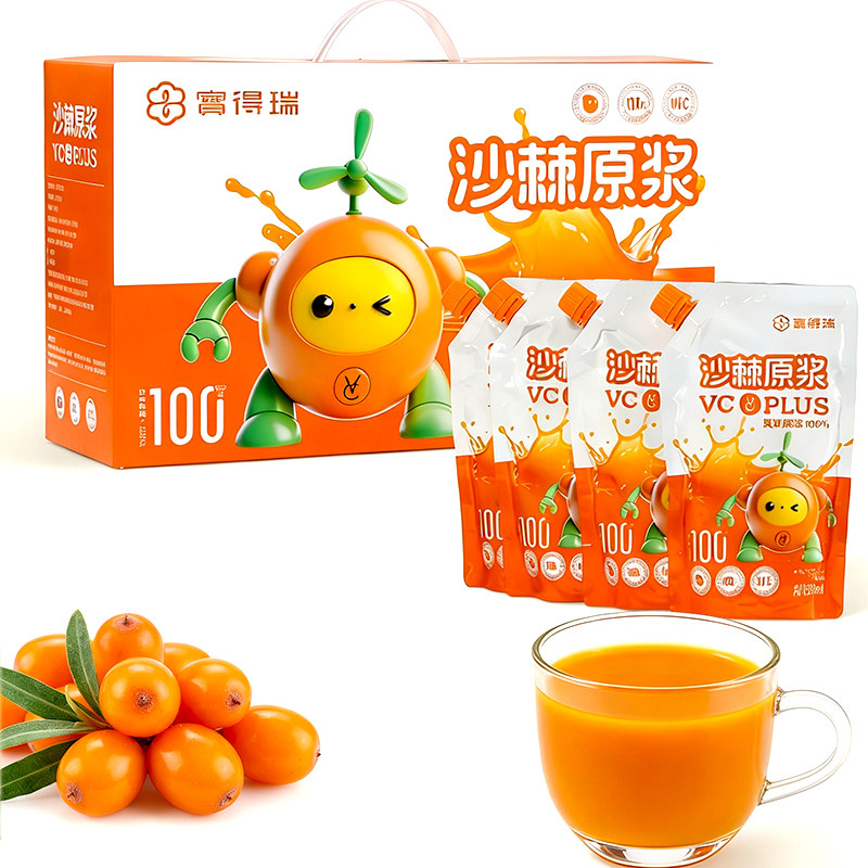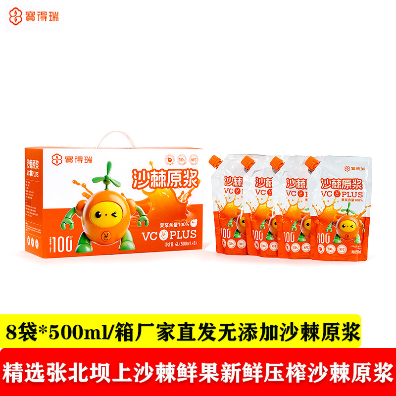 📚 宝得瑞张北坝上NFC沙棘原浆500ml*8袋不加水不加糖无添加厂家直发