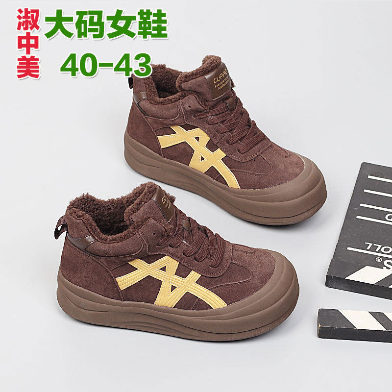 📚 加大码脚宽胖肥女鞋41一43休闲特大号棉鞋2025冬季板鞋加绒高帮鞋