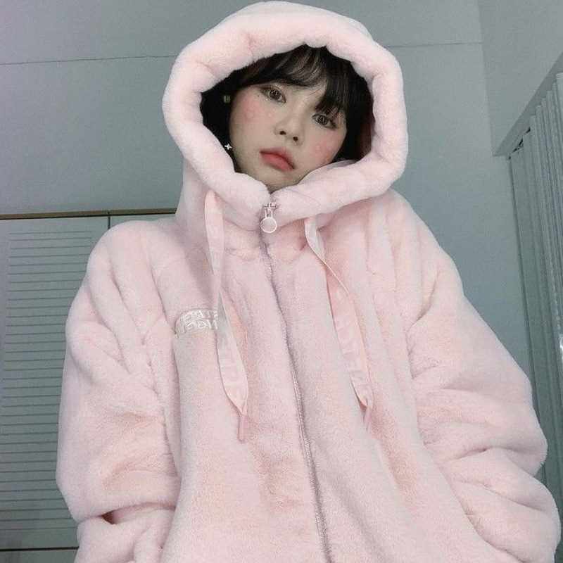 📚 Kawaii Pink Zipped Sweatshirt Femme 2021 Autumn Flannel Long