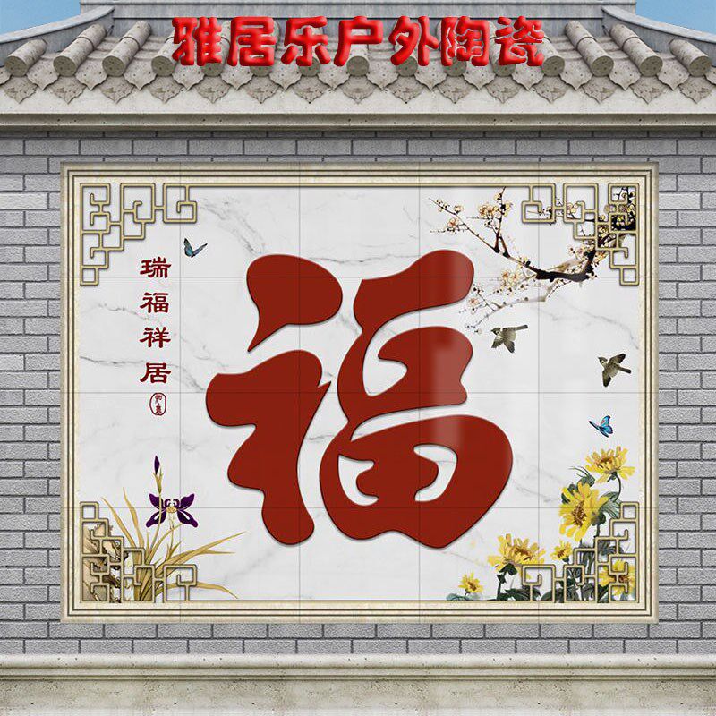 📚 农村庭院福字迎门墙瓷砖外墙壁画别墅户外影壁墙照壁微晶石装饰画